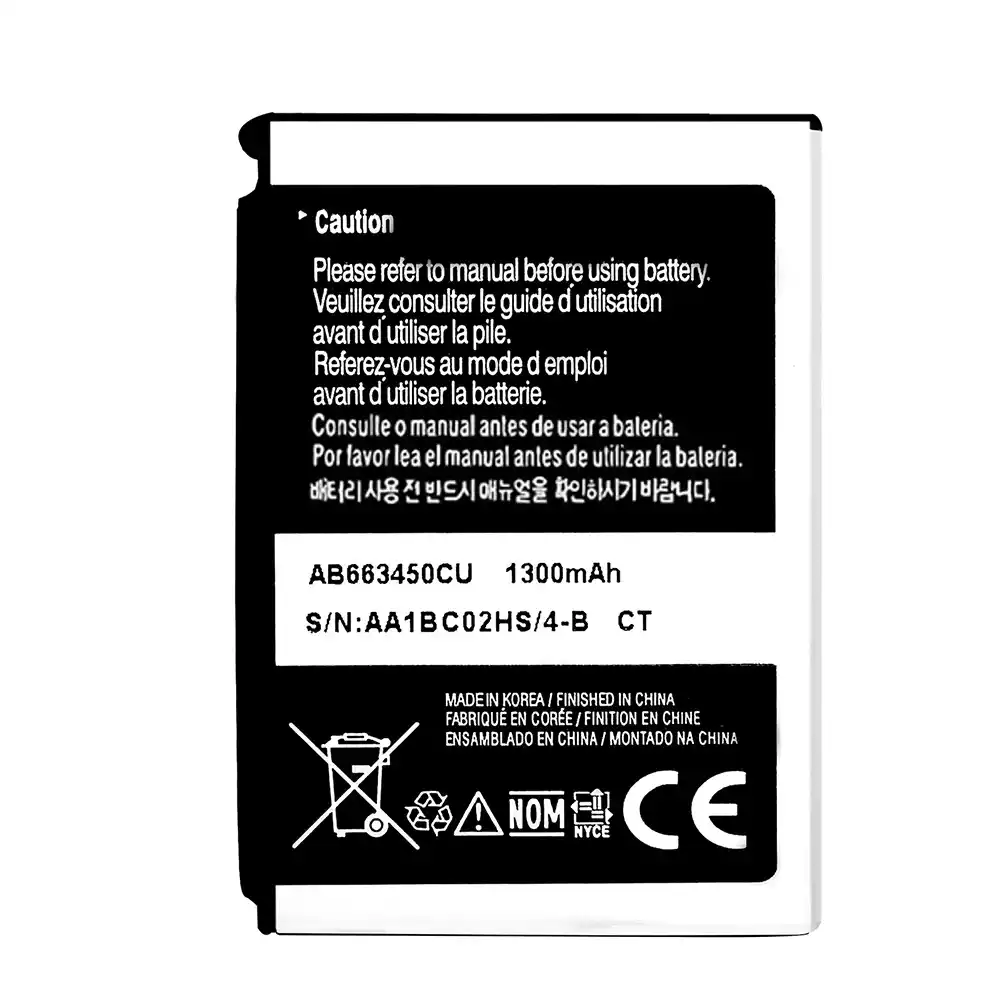 Battery model AB663450CU for Samsung SCH-i780/SCH-i788/FT-C6620/GT-C6625/GT-C6625V C6625 I600 I710