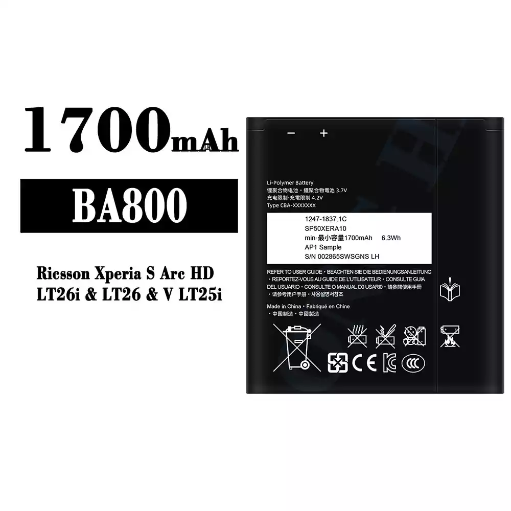 Battery model BA800 for Sony Ricsson Xperia S Arc HD / LT26i / V LT25i / LT26