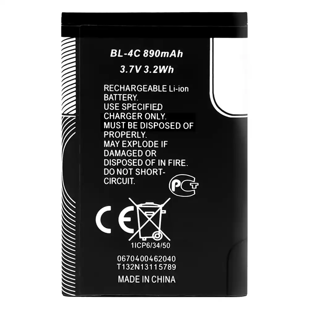 Battery model BL-4C for Nokia 6260 / 6300 / 6131 / 3500c / C2-05 / 6700s / 7610 / 6101 / 6125 / 5100 /6170 / 6100 / 6102 / 7270 / 6103 / 7200 / X2-00 / 6133 / 6136 / 6301 /6300i / 7205 cdma