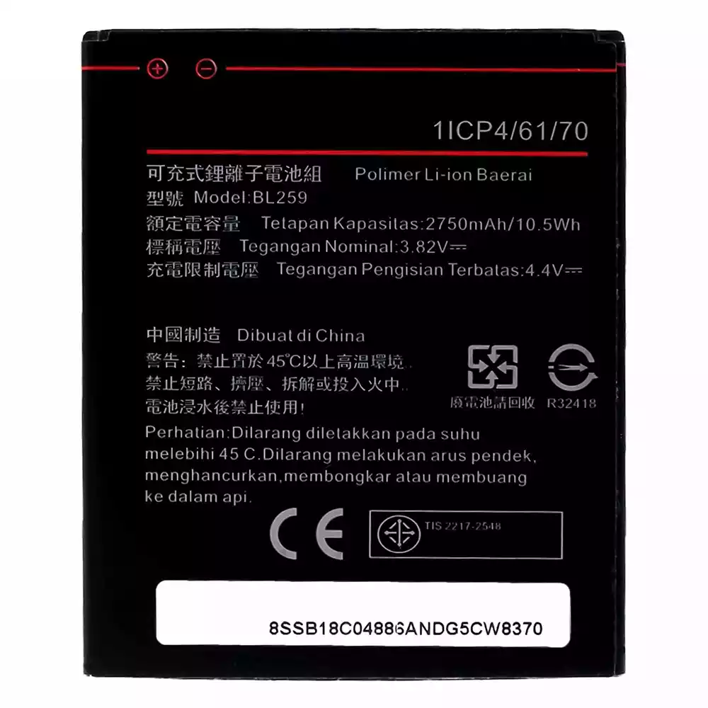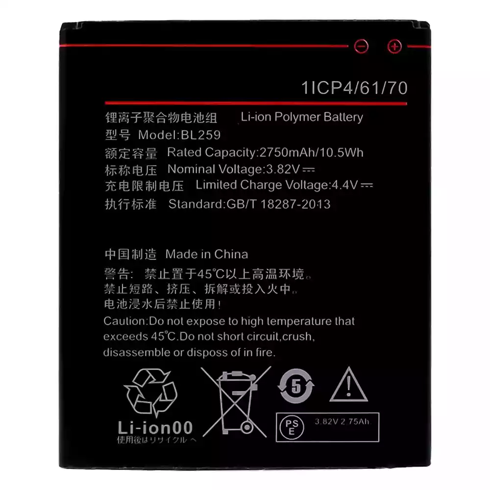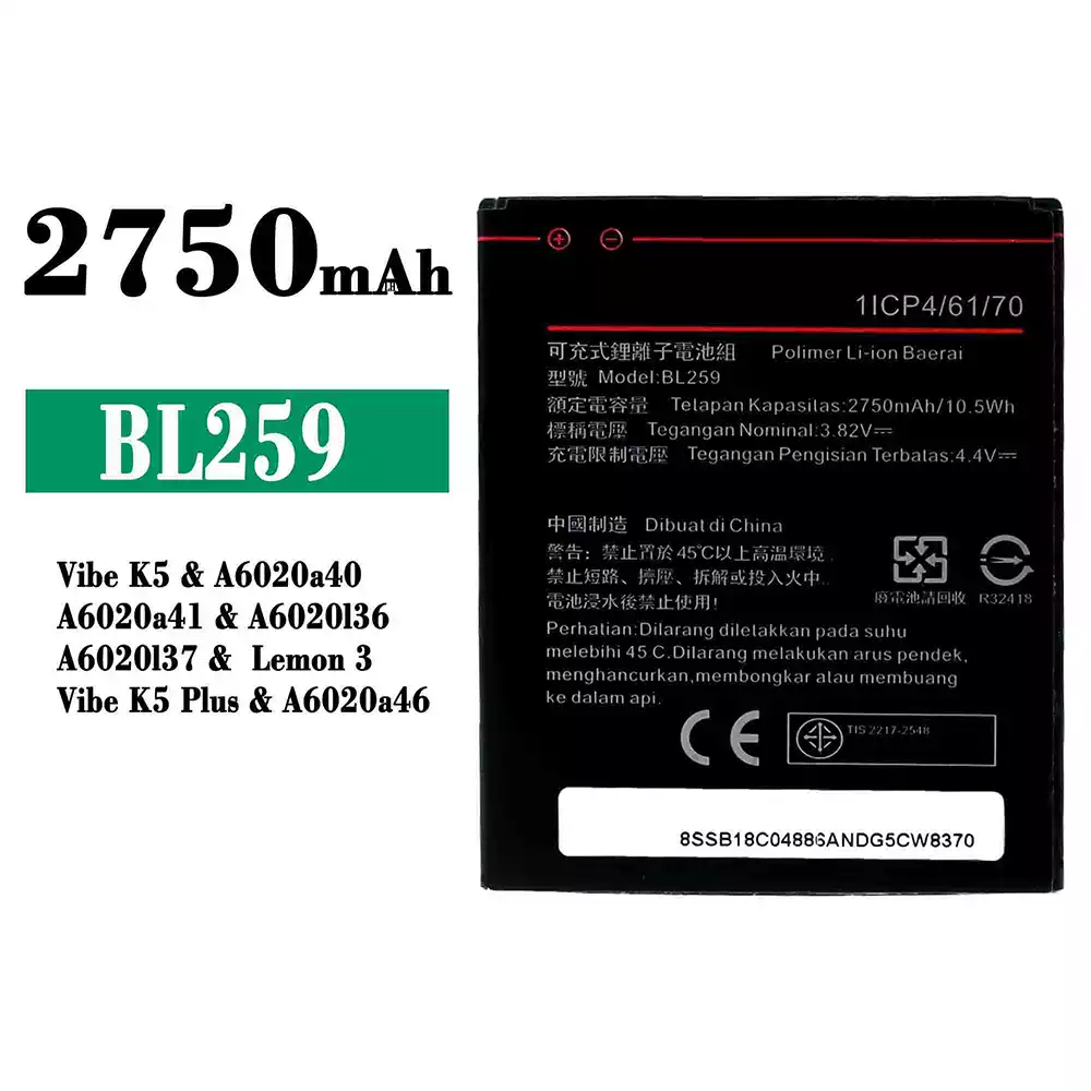Battery model BL259 for Lenovo Vibe K5 / A6020a40 / A6020a41 / A6020136 / A6020137 / Lemon 3 / Vibe K5 Plus / A6020a46