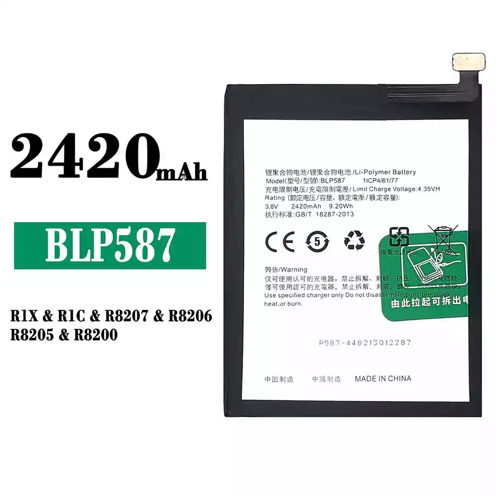Battery model BLP587 for OPPO R1X/R1C/R8207/R8206/R8205/R8200