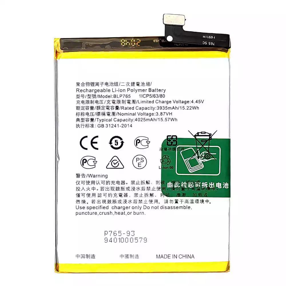 Battery model BLP765 for OPPO Reno 3(Non Pro) / Reno 3A / A91 / CPH2001 / CPH2021 / PCPM00 / F15-2020