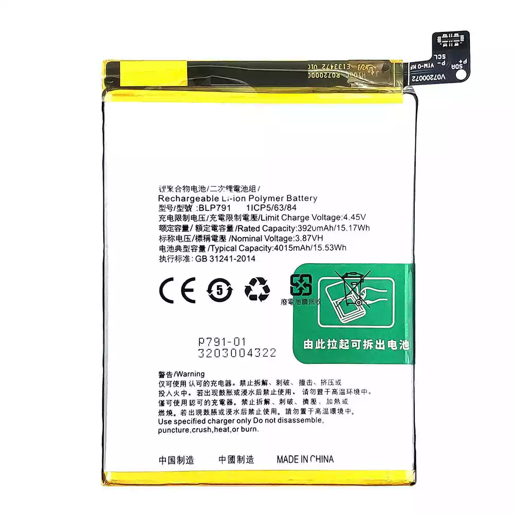 Battery model BLP791 for OPPO Reno 4 4G /Reno4 Lite /F17 /A73 4G