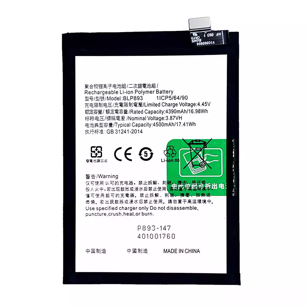 Battery model BLP893 for OPPO Reno7 5G(China)
