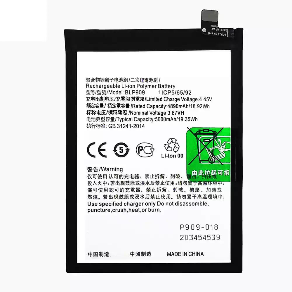 Battery model BLP909 for OPPO Reamle 9 5G/RMX3474