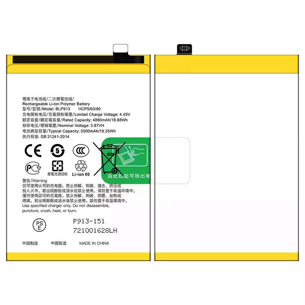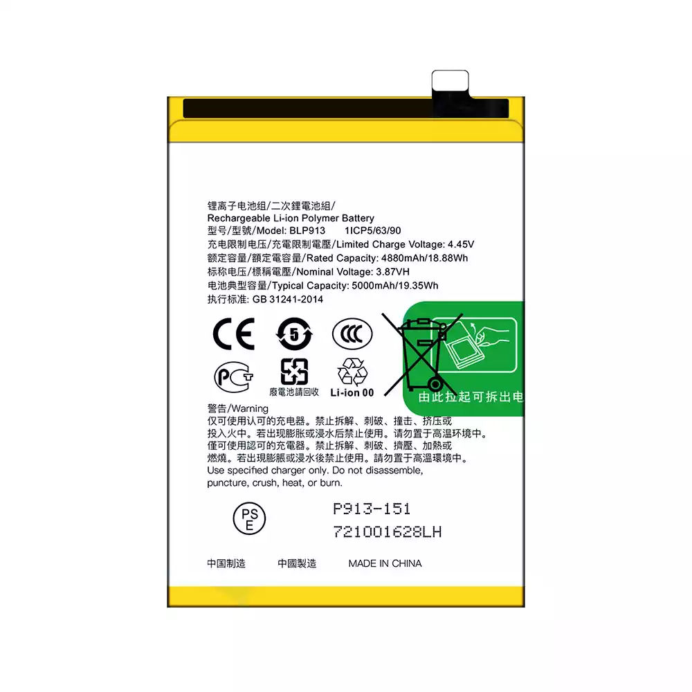 Battery model BLP913 for OPPO K9X