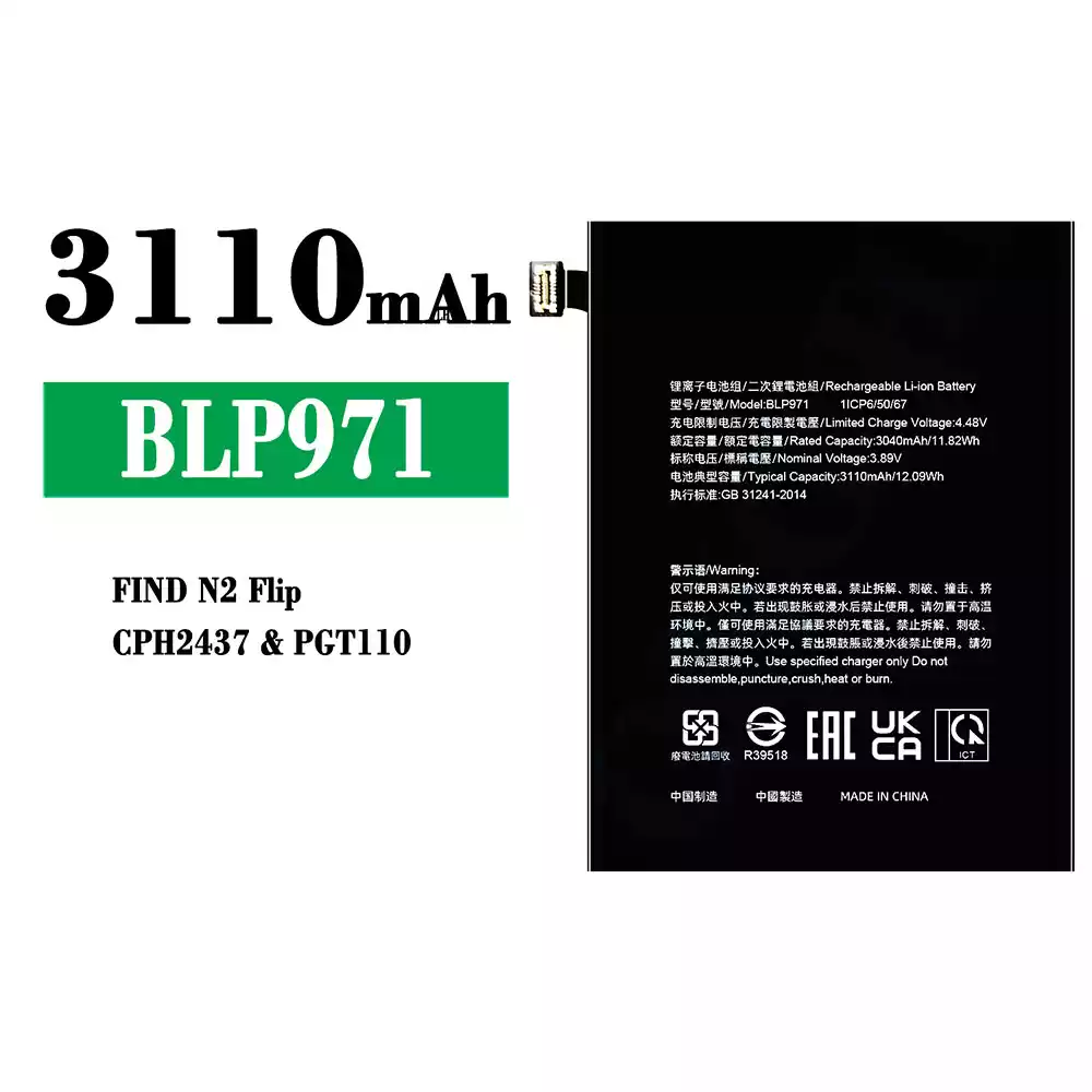Battery model BLP971 for OPPO FIND N2 Flip/CPH2437/PGT110