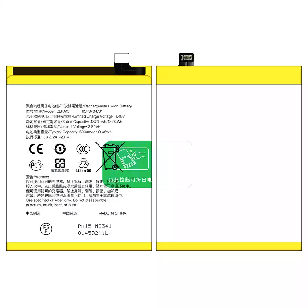 Battery model BLPA15 for OPPO Realme 11 5G / Realme 11Pro 4G 5G / Reno 11 5G / Reno 11 Global version