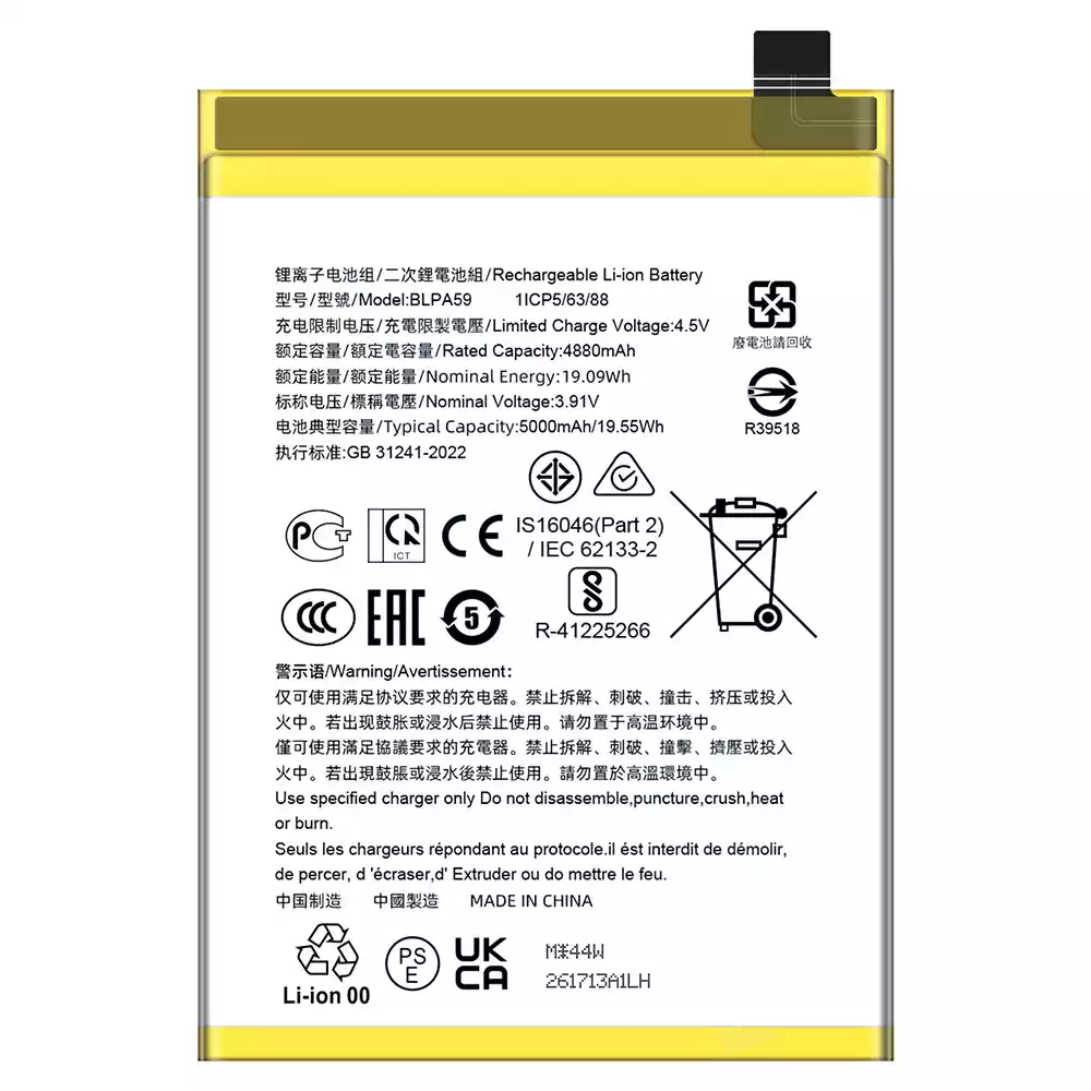 Battery model BLPA59 for OPPO Reno12 5G/CPH2625