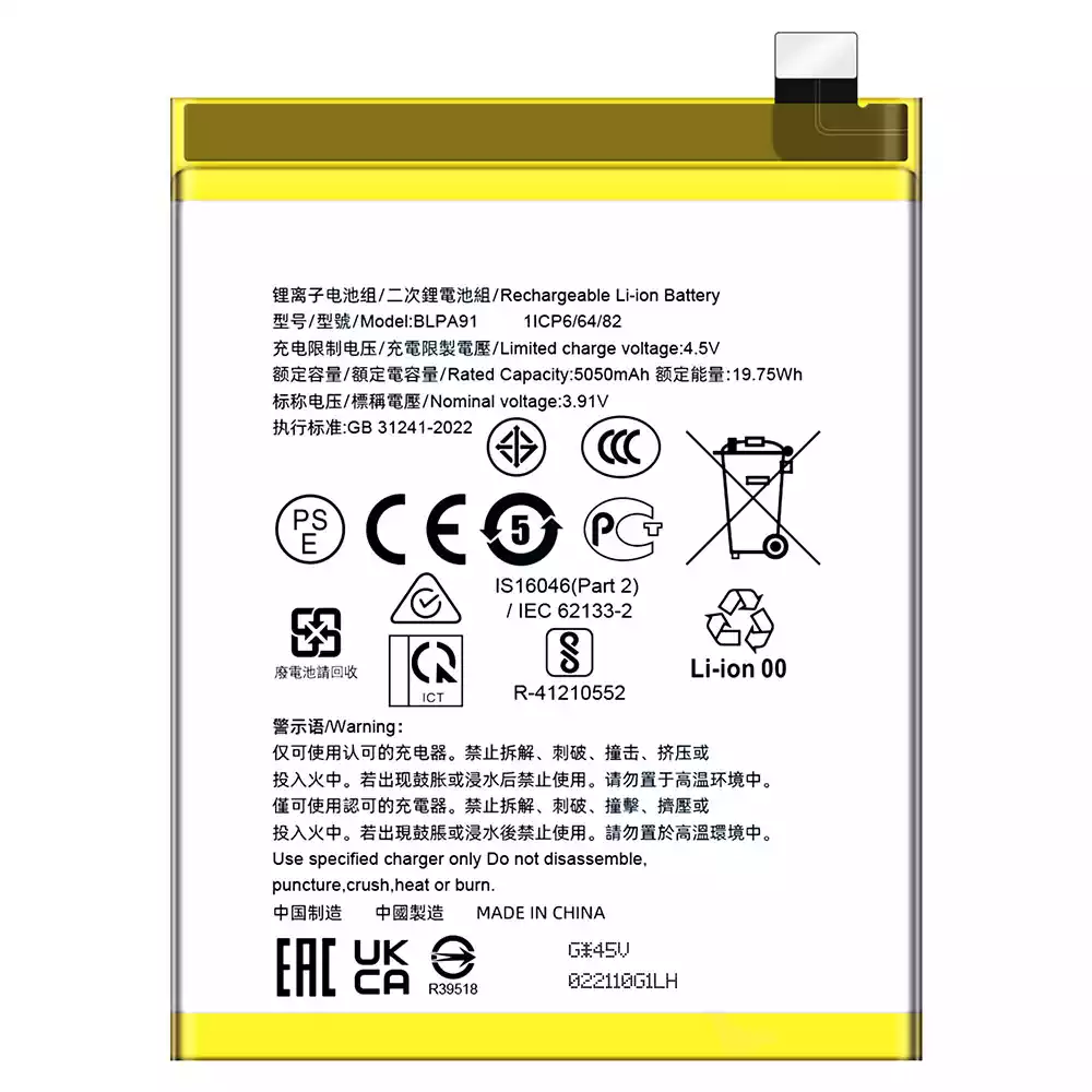 Battery model BLPA91 for OPPO Realme 13 Pro Plus/ RMX3920/ RMX3921
