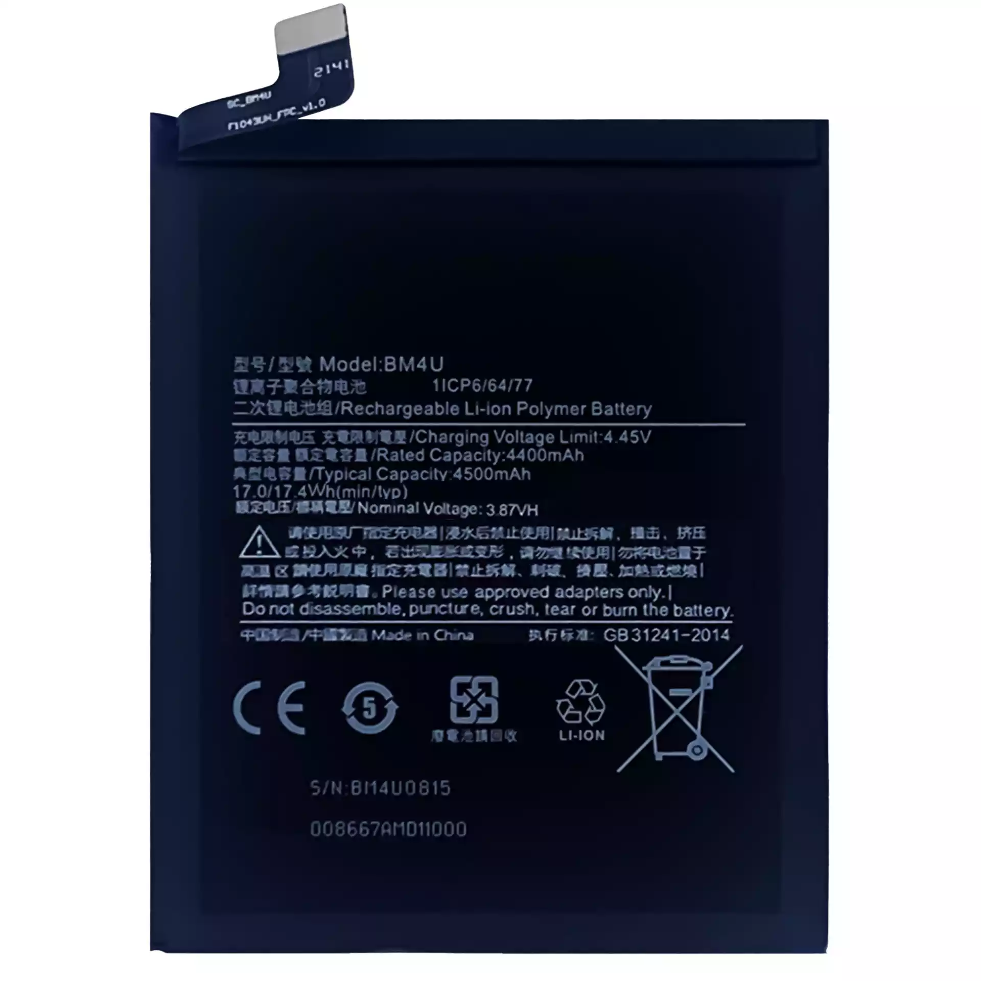 Battery model BM4U for Xiaomi Redmi K30 Supreme Version