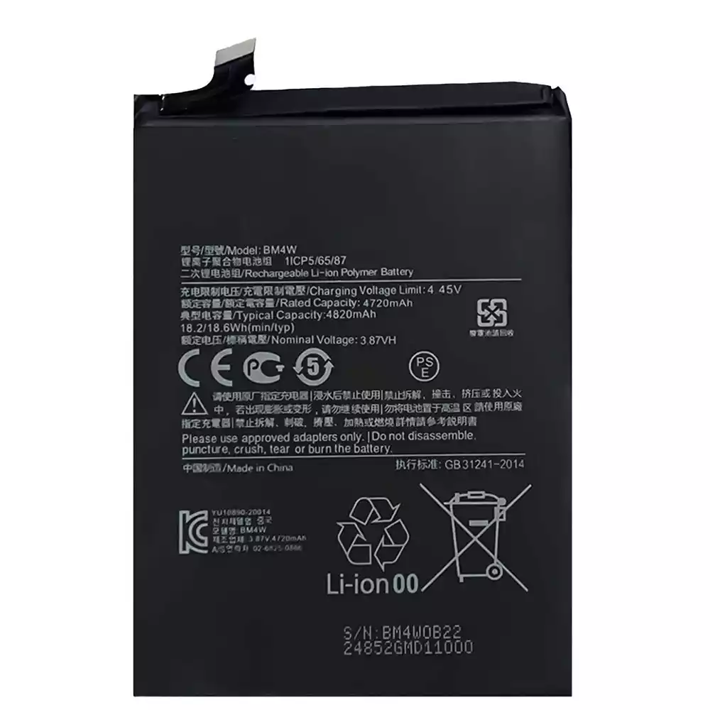 Battery model BM4W for Xiaomi Note 9 Pro 5G / M2007J17C