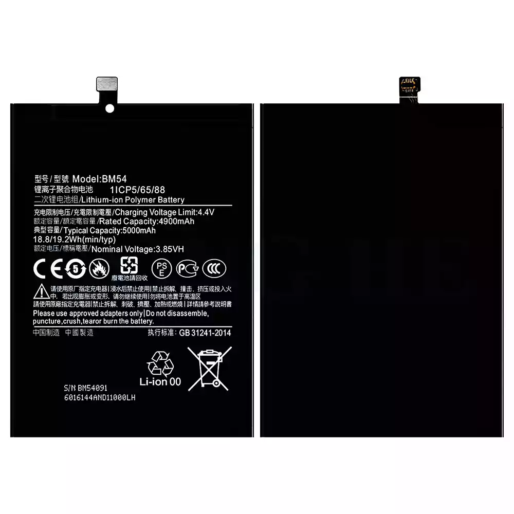 Battery model BM54 for Xiaomi Redmi Note 9 5G / Redmi Note 9T