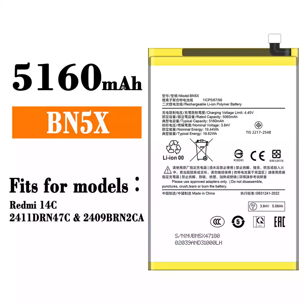Battery model BN5X for Xiaomi Redmi 14C / 2411DRN47C / 2409BRN2CA