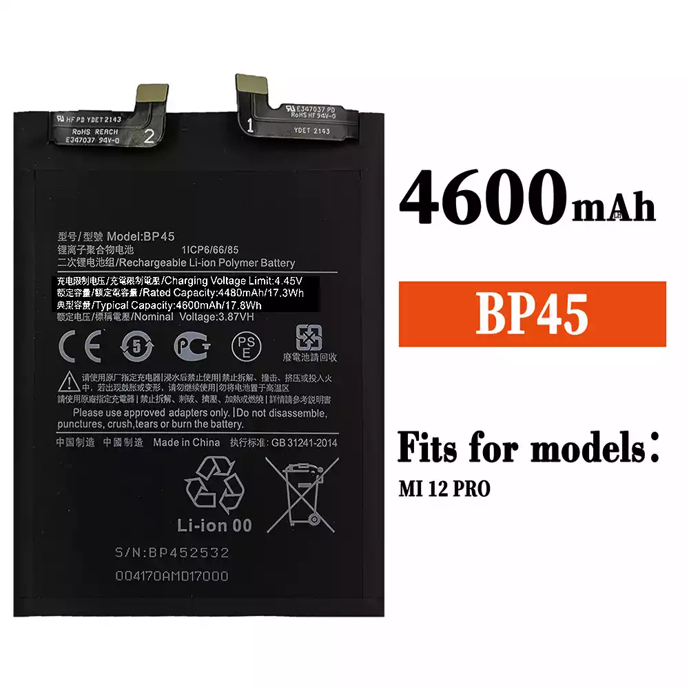 Battery model BP45 for Xiaomi MI 12 Pro / 12X / 201122C