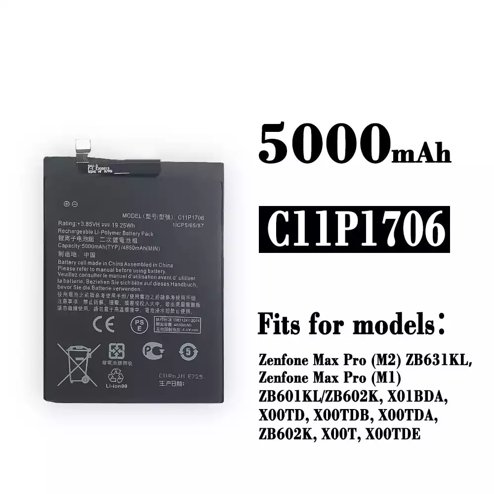 Battery model C11P1706 for Asus Zenfone Max Pro (M2) ZB631KL / Zenfone Max Pro (M1) / ZB601KL / ZB602K / X01BDA / X00TD / X00TDB / X00TDA / ZB602K / X00T / X00TDE