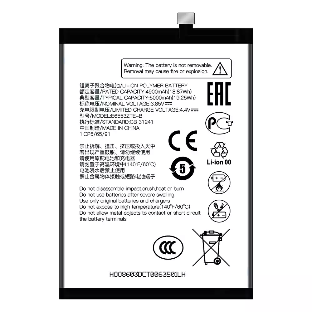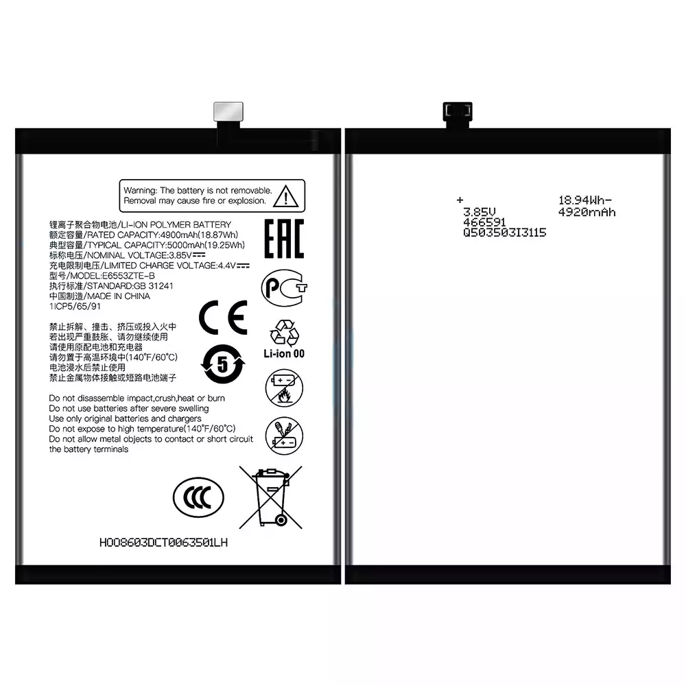 Battery model E6553ZTE-B for ZTE V50