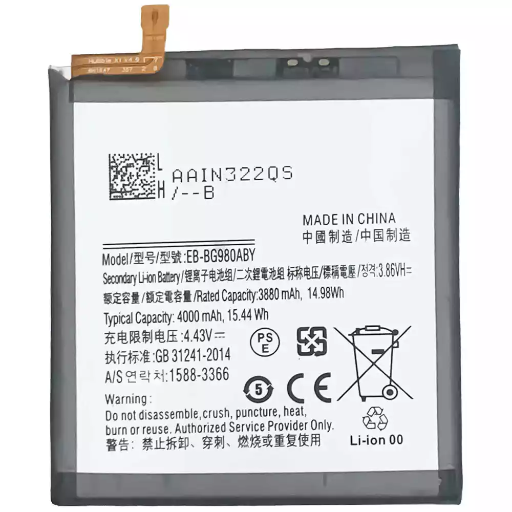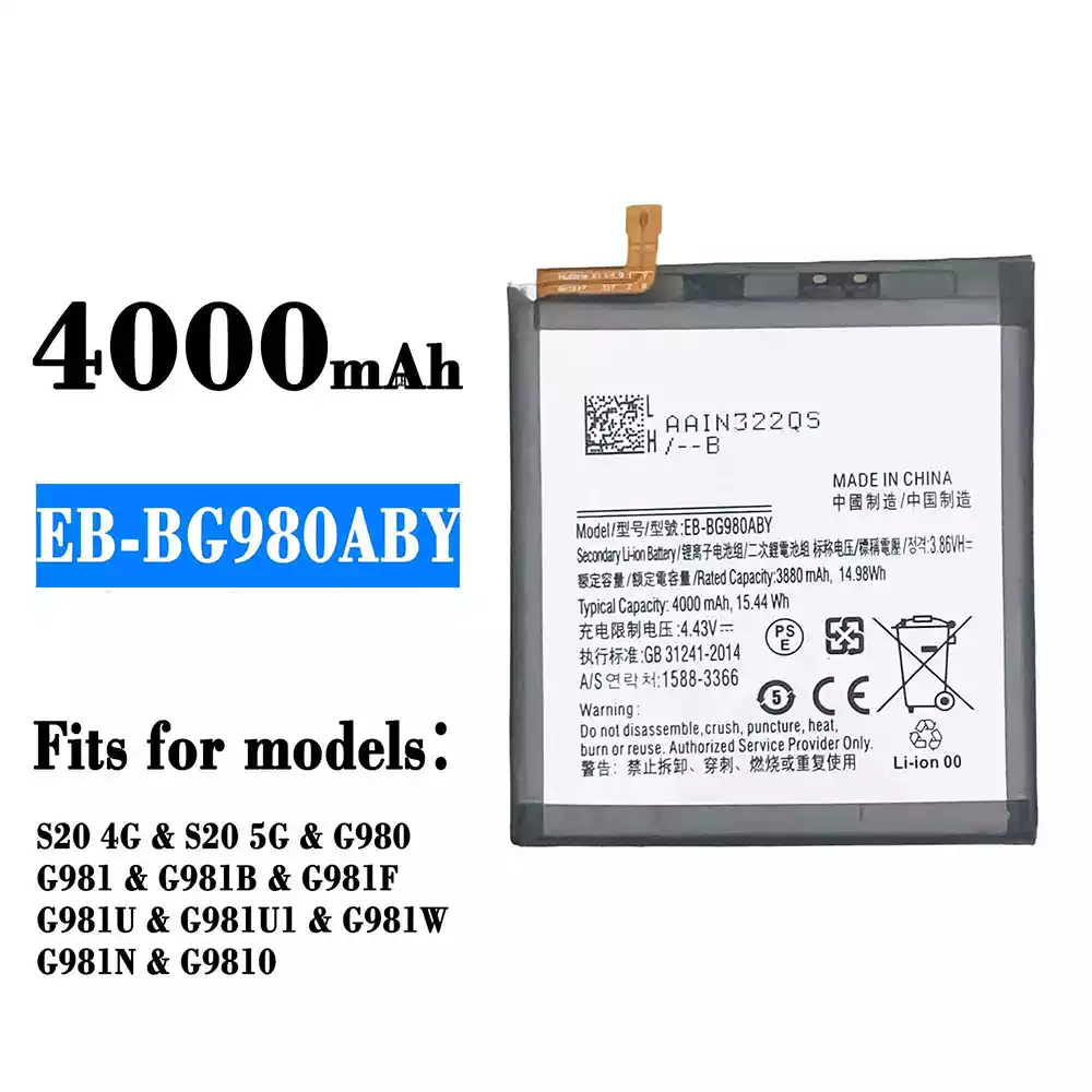 Battery model EB-BG980ABY for Samsung S20 4G/S20 5G/G980/G981/G981B/G981F/G981U/G981U1/G981W/G981N/G9810