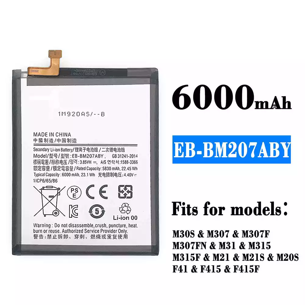 Battery model EB-BM207ABY for Samsung M30S/M307/M307F/M307FN/M31/M315/M315F/M21/M21S/M20S/F41/F415/F415F