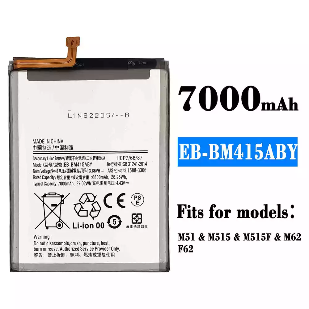 Battery model EB-BM415ABY for Samsung M51,M515,M515F,M62,F62