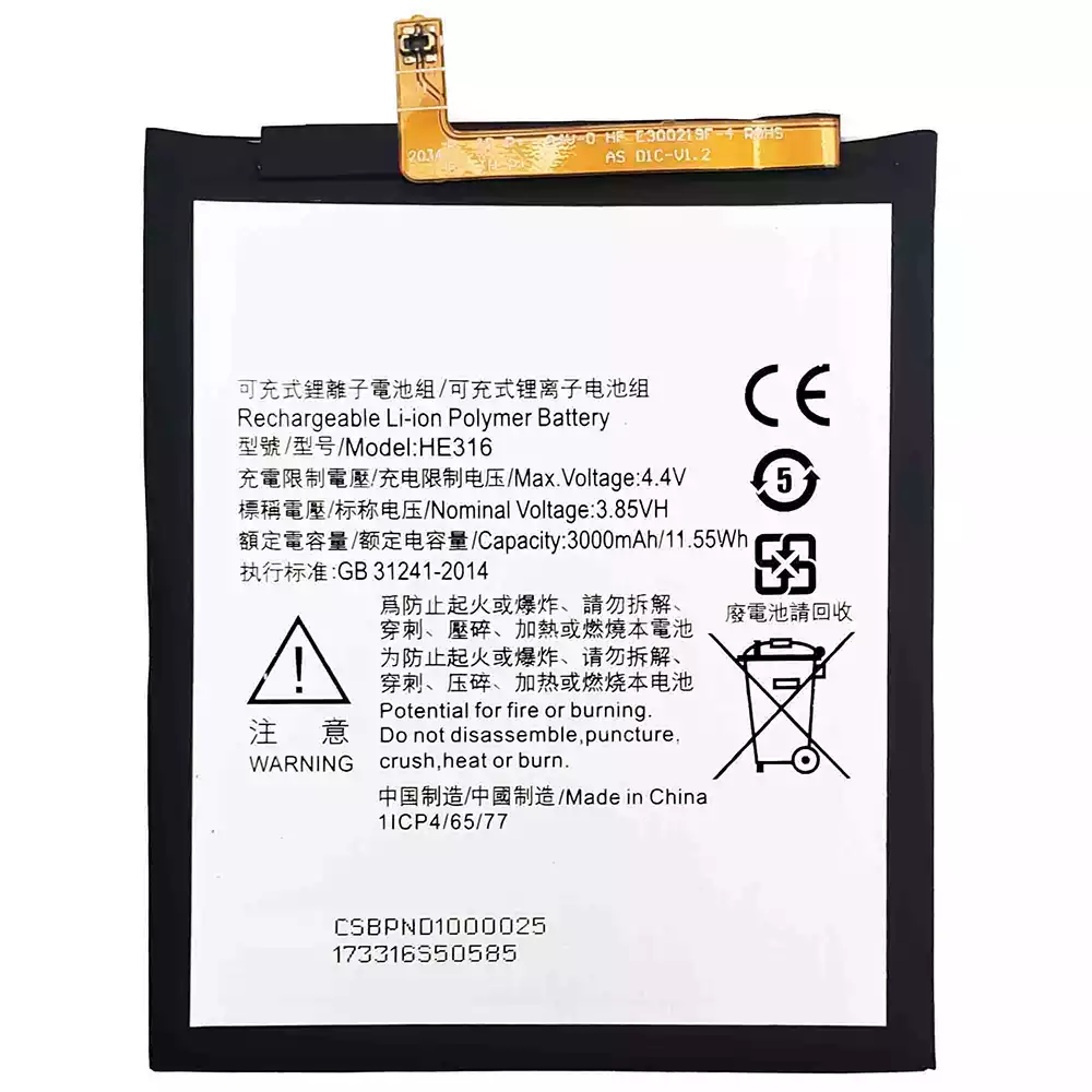 Battery model HE316 for Nokia 6 /TA-1021/TA-1033/TA-1000/TA-1003/TA-1025/TA-1039