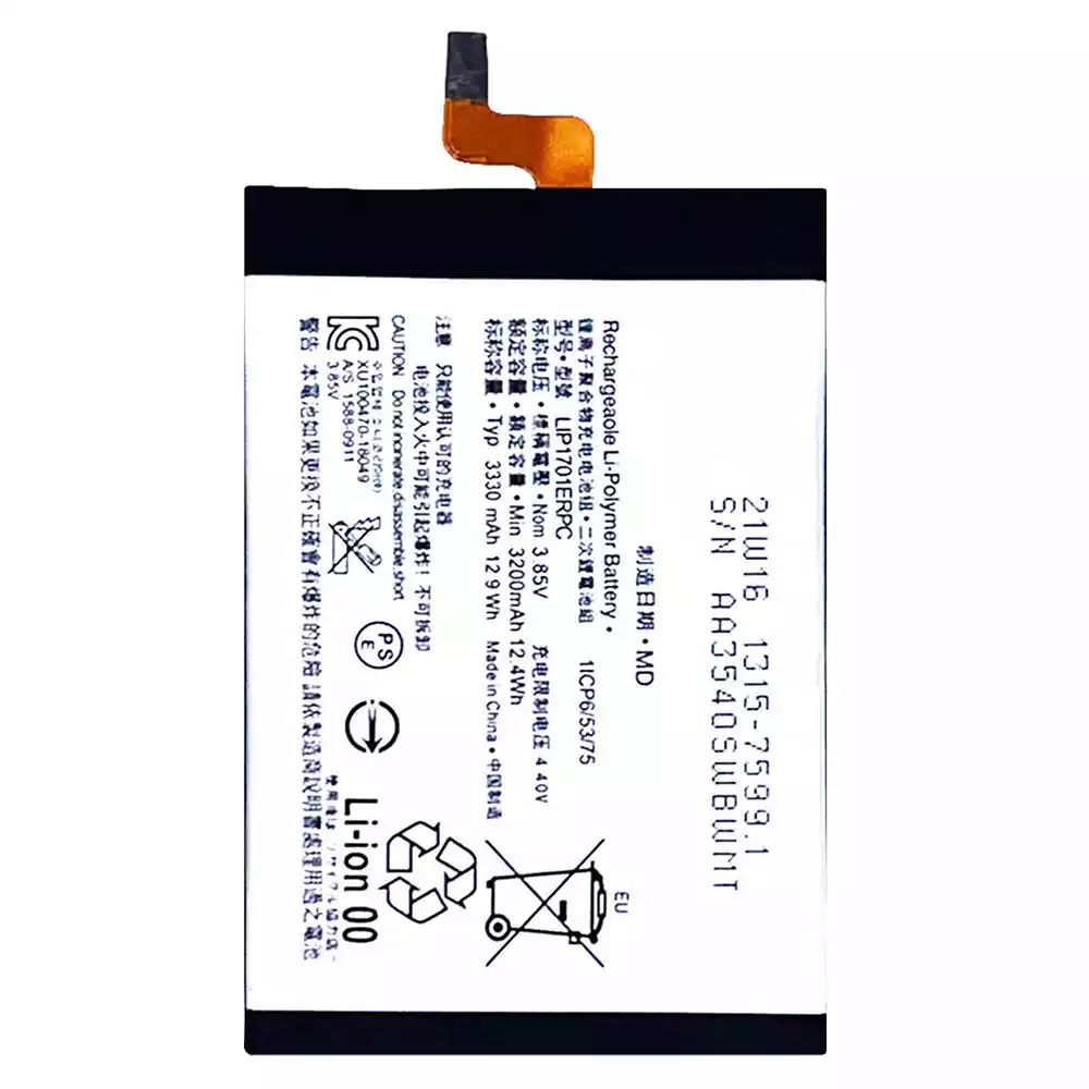 Battery model LIP1701ERPC for Sony Xperia 1 / Xperia X74 / J8110 / J8170 / J9110 / J9150 / SOV40 / SO-03L