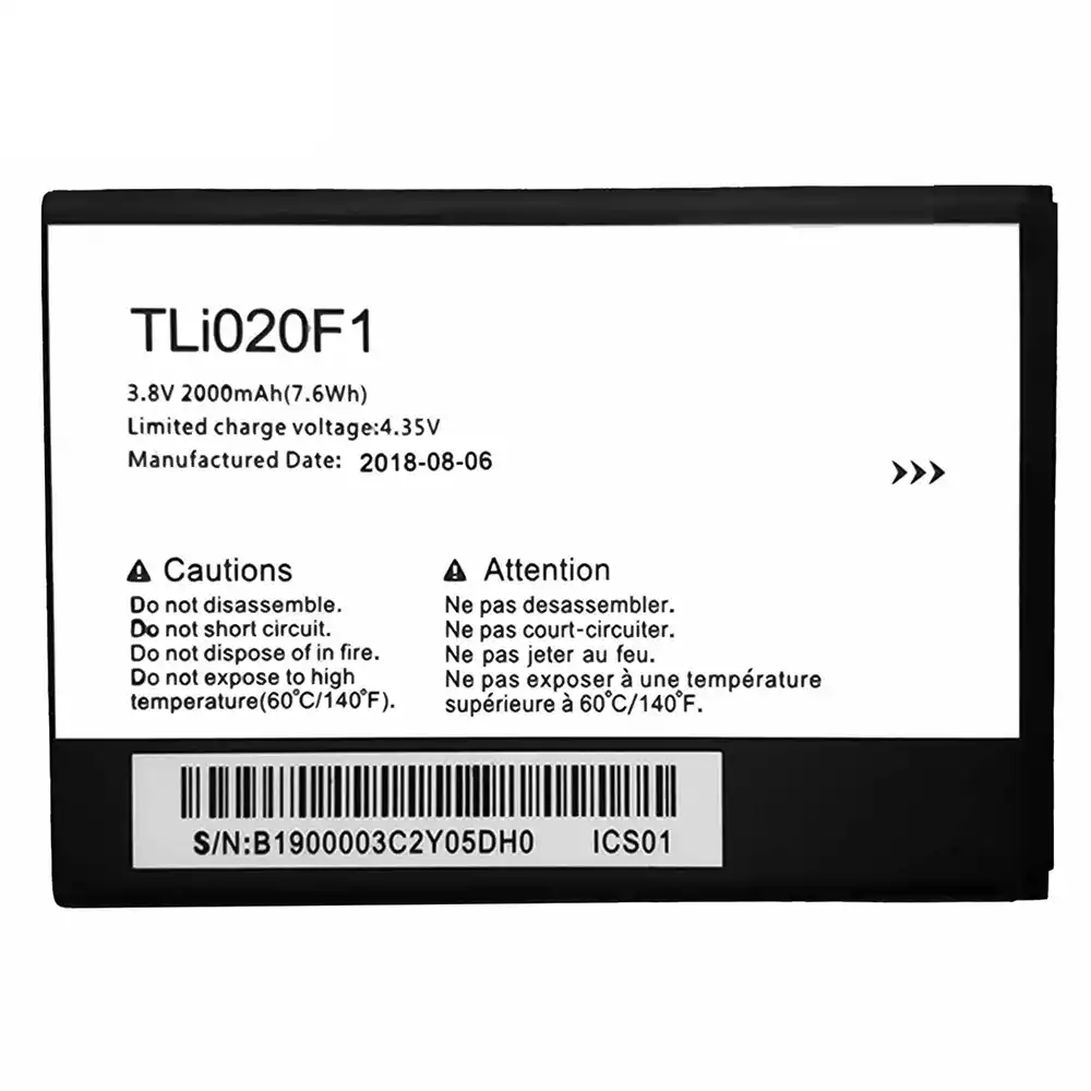 Battery model TLi020F1 for Alcatel Pop C7 / 7040A / 7040F / 7041X / 7040D / 7041D / 7040E / Pop 2 / 5042d / J720T / J726T / VDF500