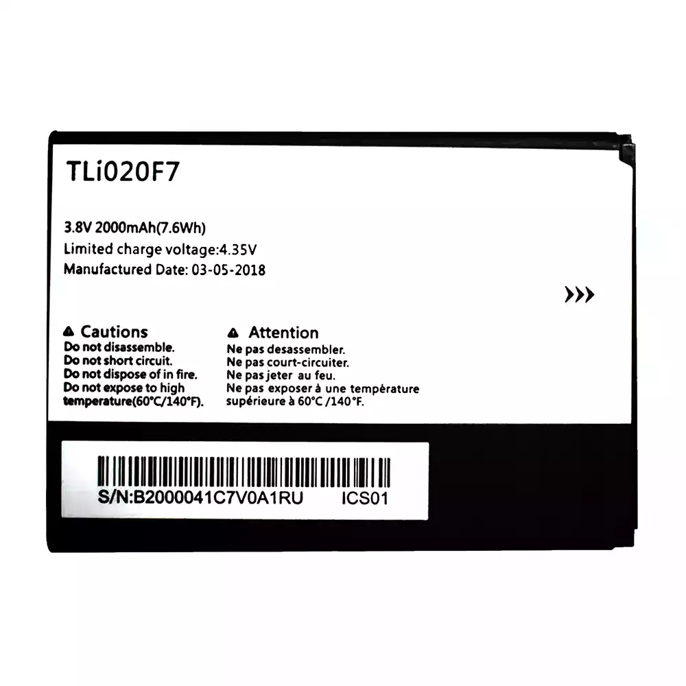 Battery model TLi020F7 for Alcatel PIXI 4 5045D/Pop 2/5042D/C7/7040/7040D/7041/7041D