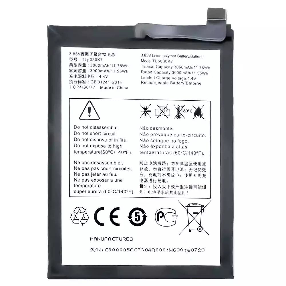 Battery model TLP030K7 for Alcatel 1s 2019/5024A/5024D/5024I/5024J/5024D_EEA/5024F/5024F_EEA