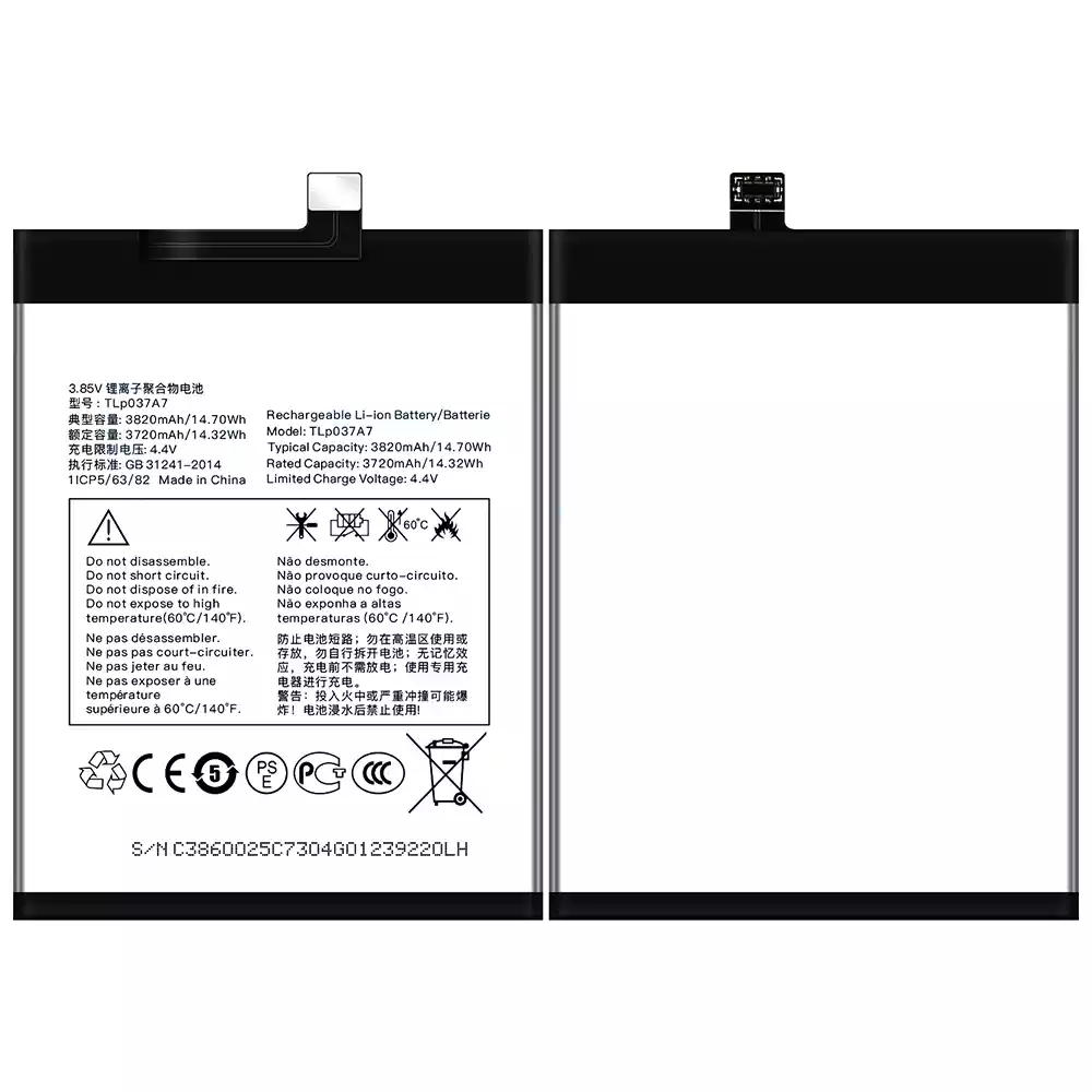 Battery model TLP037A7 for Alcatel TCL Plex/T780H