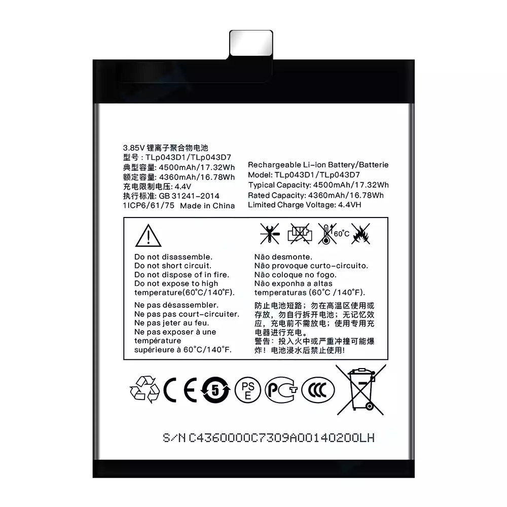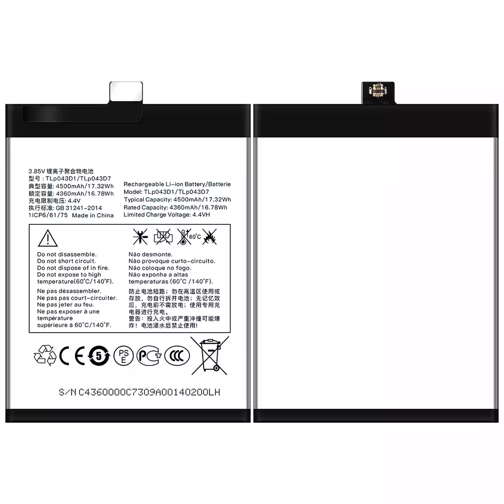 Battery model TLP043D1/TLP043D7 for Alcatel TCL 10 Plus/TCL 20 Plus/TCL 10 pro/TCL 20 pro