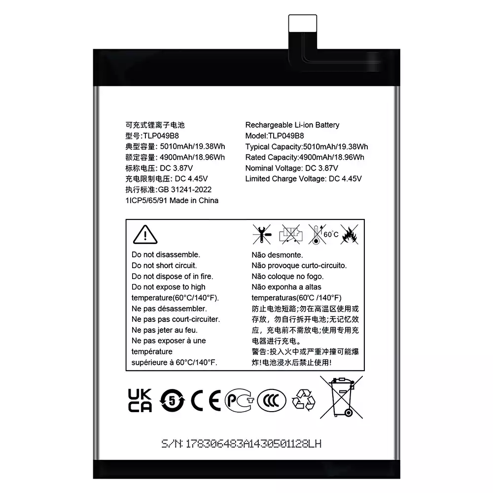 Battery model TLP049B8 for Alcatel TCL 505/T509K